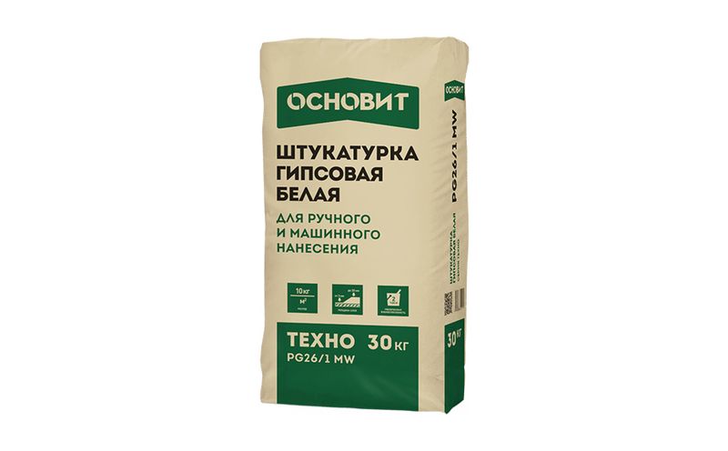Штукатурка гипсовая ОСНОВИТ ТЕХНО PG26/1 MW, 30 кг, белая