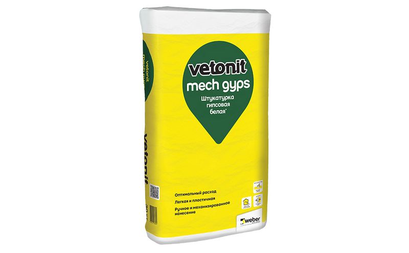 vetonit mech gyps - гипсовая суперпластичная штукатурка для профессионального механизированного нанесения. Можно использовать для базового выравнивания стен и потолков, в сухих помещениях с нормальной влажностью, а также кухне, коридоре, сан. узле (кроме ванной комнаты). Смесь трещиностойкая и паропроницаемая.